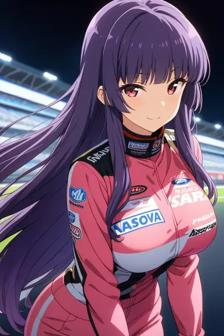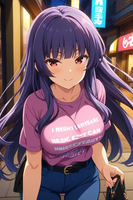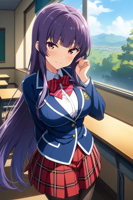 트리거 단어: kagurazakasaya, 보라색 머리카락, 곧은 앞머리, 매우 긴 머리카락, 붉은 눈