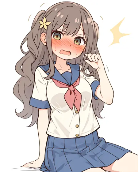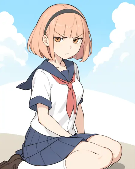 役立つポジティブなキーワード:フラットカラー、学校制服、スカート、固い円形の目