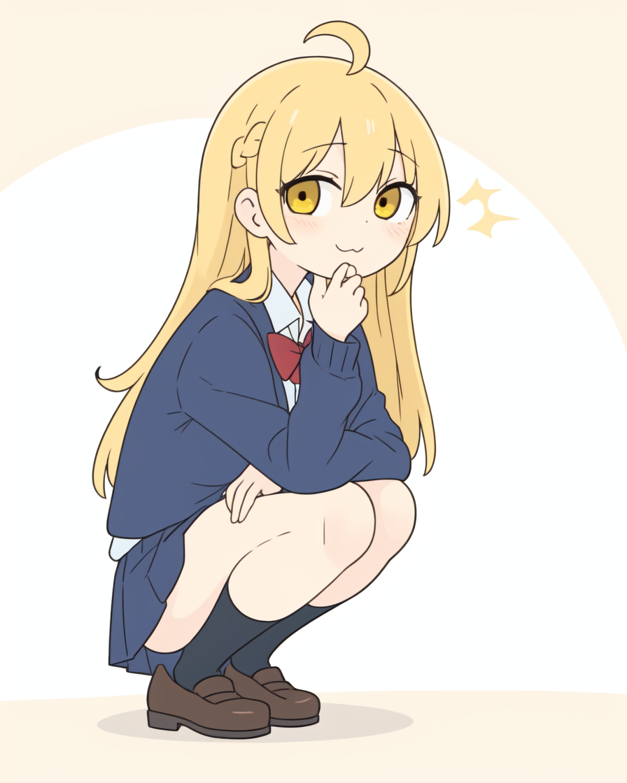ポジティブプロンプトに "(simple background:0.3), (solid circle eyes:0.7)" を追加すると、背景が完全に白になったり目が完全に固い色になったりすることなく、スタイルを少し強化できます。
