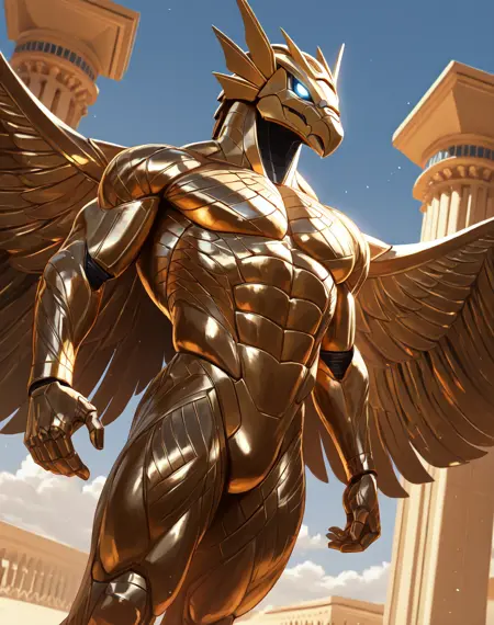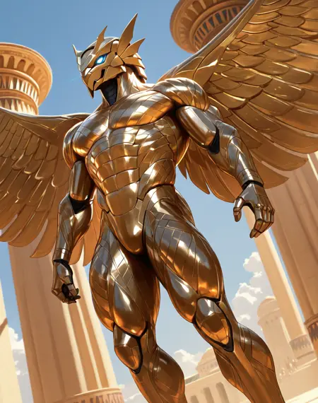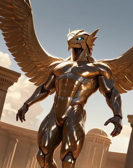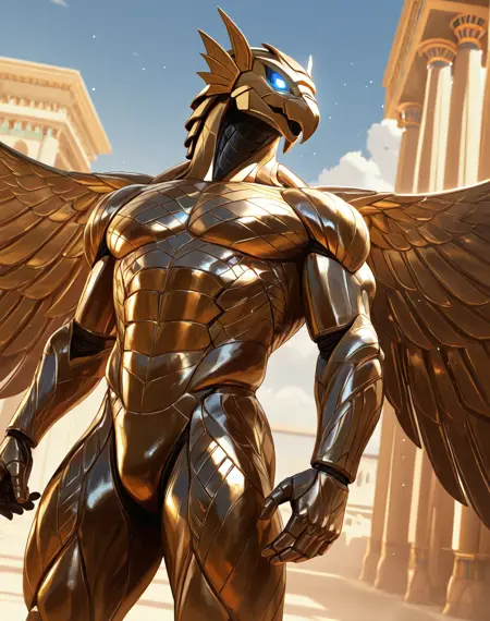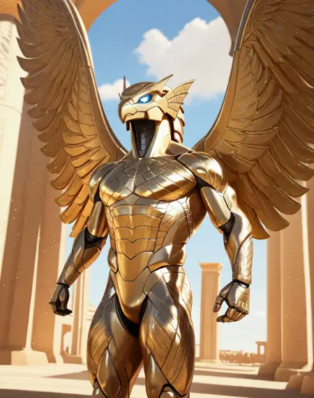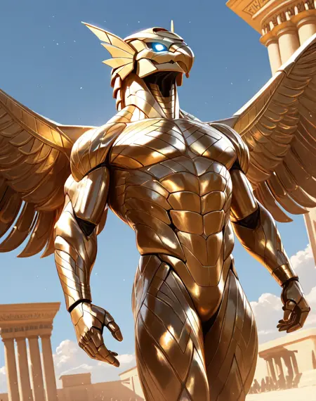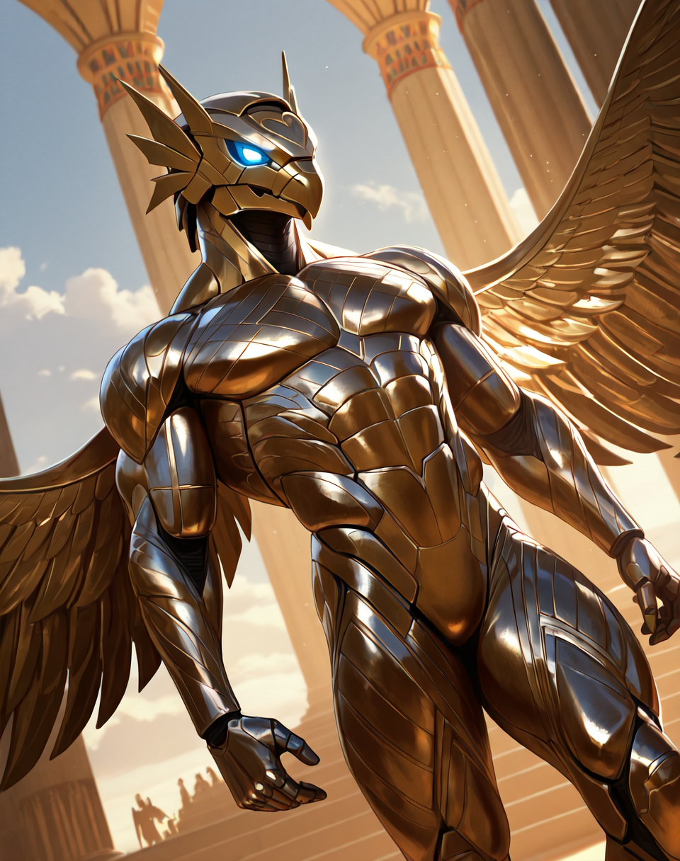 此LoRA的提示词为(荷鲁斯,埃及神祇,肌肉发达,机器人,机甲,翅膀)。