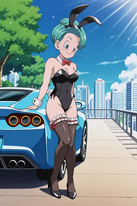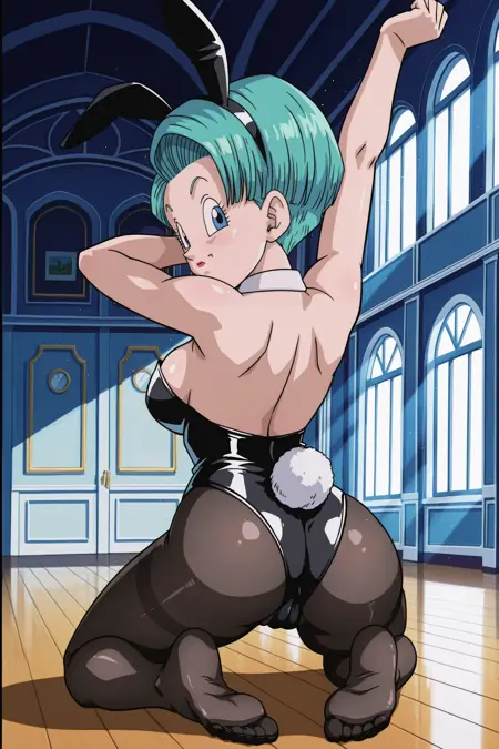 bulma, gt, mature female, short hair, quiff, blue eyes, aqua hair, mouth markings,