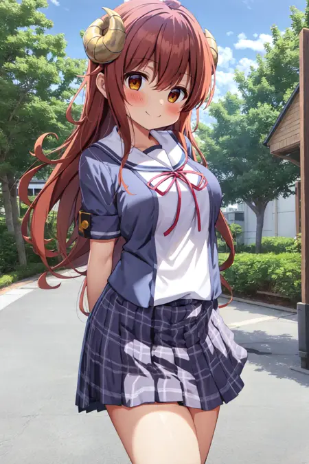 1.0的权重可能有点高。使用吉田有子(《町にマゾク》),山鬼,角,普通服装,不包含暗影女主人服装。