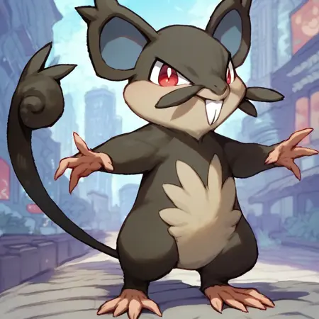 一只宝可梦阿罗拉地区傻鼠的角色模型。