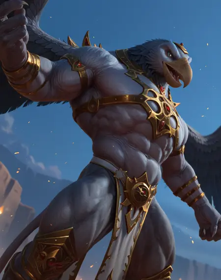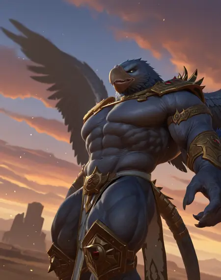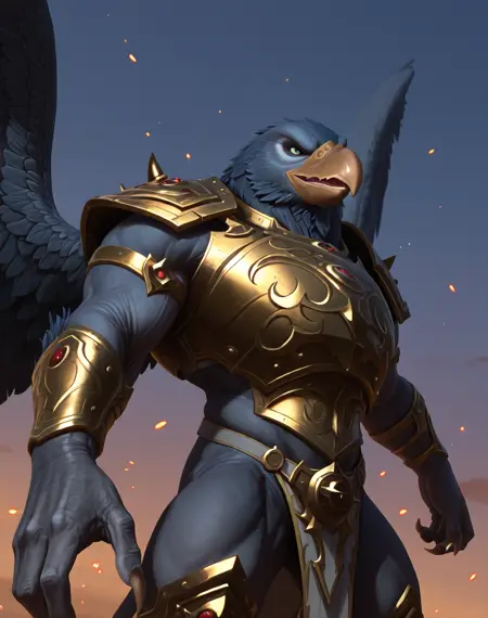 此LoRA的提示词为(Demon Prince of Tzeentch, Tzeentch, eagle, muscular, )。