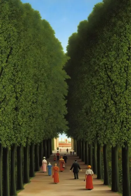 No portrait of people are included in the training set because, TBH, I don't like them, even though I like Rousseau's paintings 😅 (but for the sake of completeness, I just might make another LoRA based on his portrait paintings.)