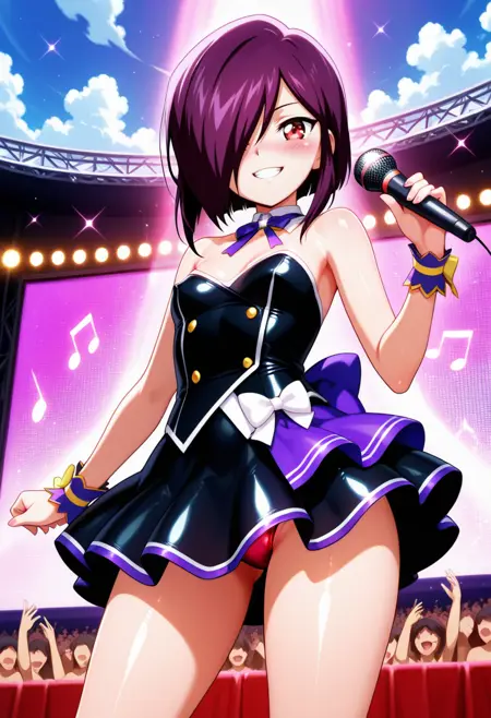 触发词:PulseAbel, 1girl, solo, 发丝遮住一只眼睛, 红眼,