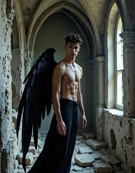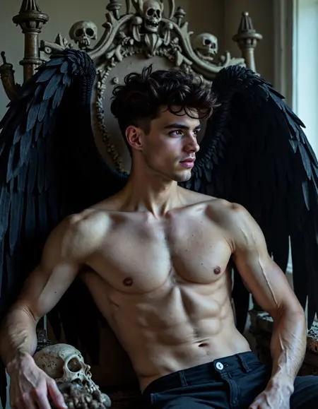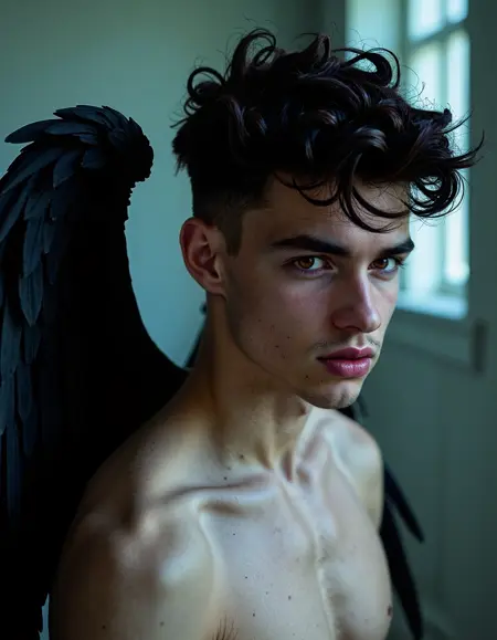 Custom AI character based on Abrahamic mythology Lucifer Morningstar as a handsome young man.