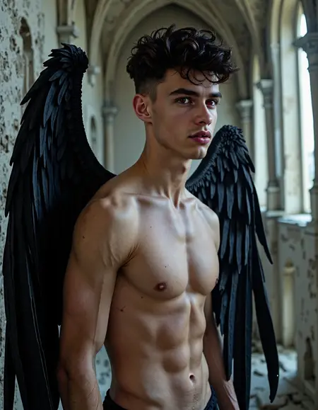 基于亚伯拉罕神话中的路西法·晨星,塑造一位英俊的年轻男子形象的自定义AI角色。