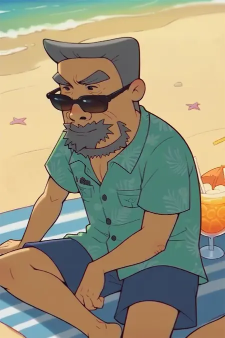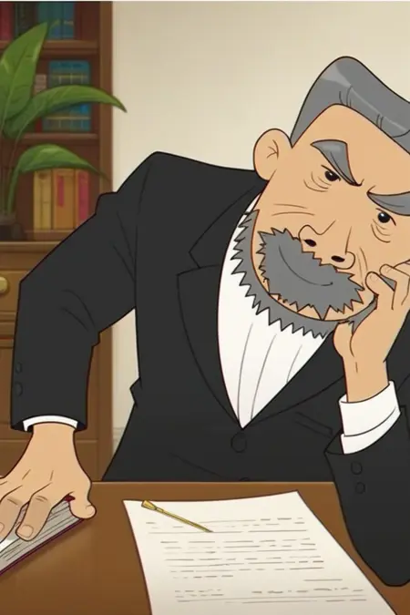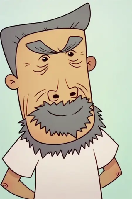 score_9, score_8_up, score_7_up, score_6_up,score_cartoon,cartoon exaggeration style,flat color,Naive Art Style,1boy,solo,old,old man,GrandpaNiu,beard,grey hair,white shirt