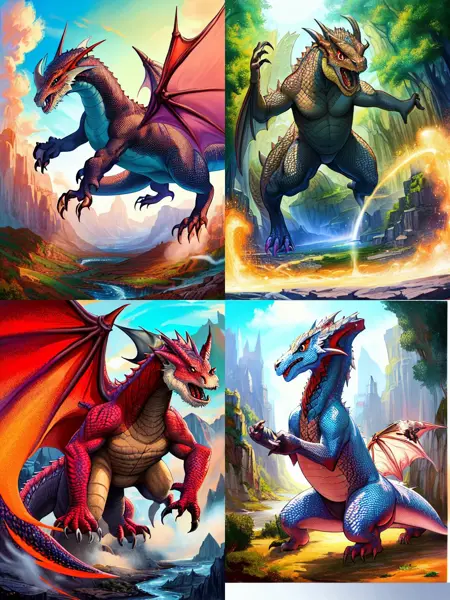 ・Examples are a girl, a castle, a watercolor girl, and a dragon.