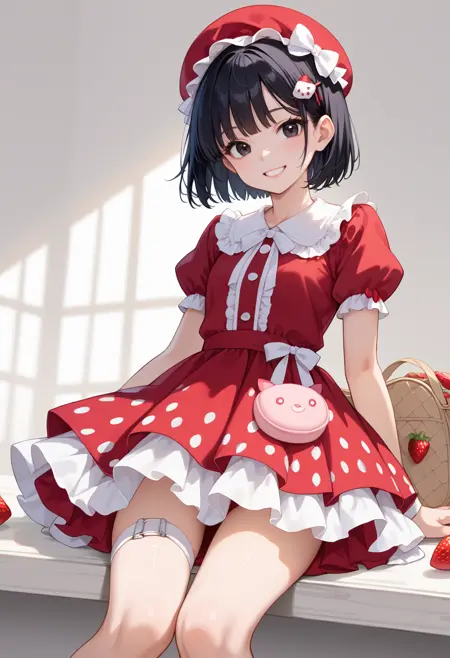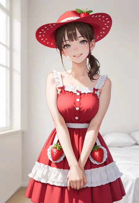此 LoRA 可能生成带有草莓图案的可爱裙子。