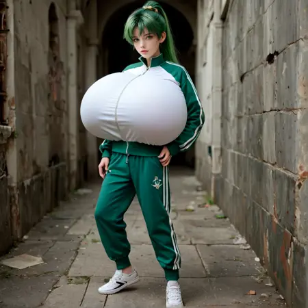 이 프롬프트를 사용하면 항상 발생하지는 않지만, 셔츠나 드레스가 가슴 아래에서 주름지지 않고 가슴에서 아래로 느슨하게 흐르는 효과를 줄 수 있습니다.