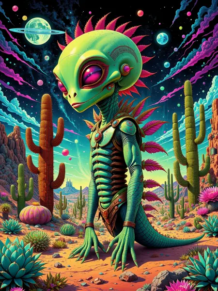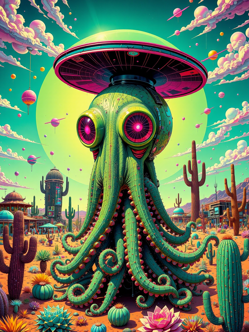 DP Psychedelic Cactus Dream World FLUX & SDXL