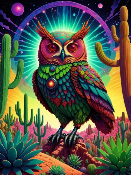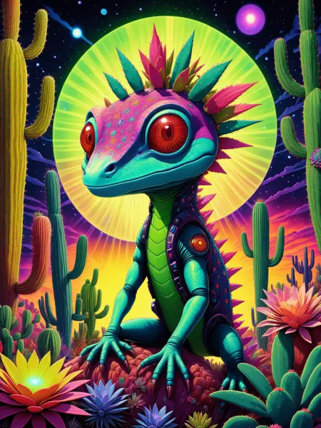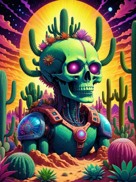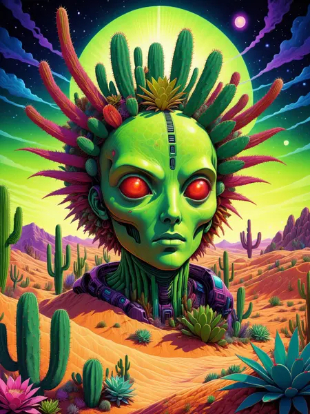 DP Psychedelic Cactus Dream World FLUX & SDXL