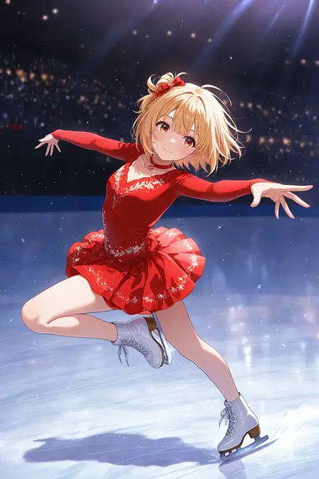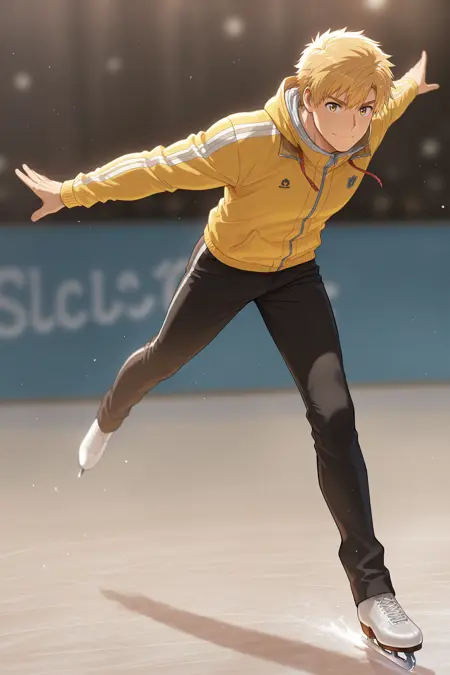 A LoRA for ice skating poses and 3 main characters from manga Medalist.