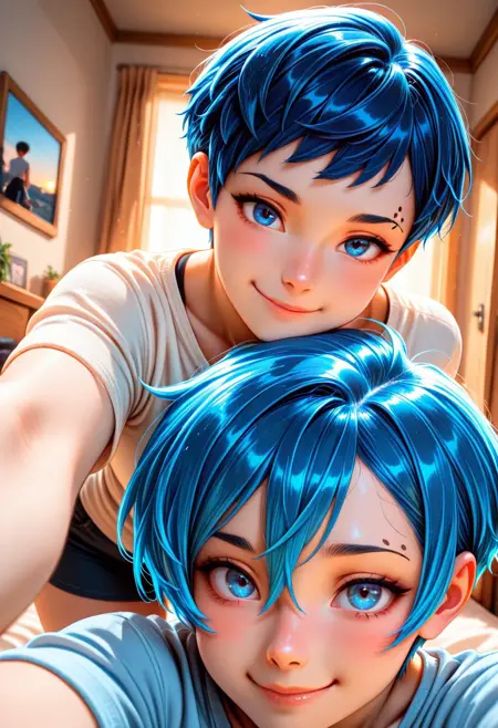 2girls, twins girls, Ari and Zoe-IL, short hair, blue hair, blue eyes, sexy body,