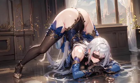 建议关键词:眼罩,珠宝,裙子,乳房,耳环,脱袖,黑色手套,乳沟,白发,长袖,刘海,中等大小乳房