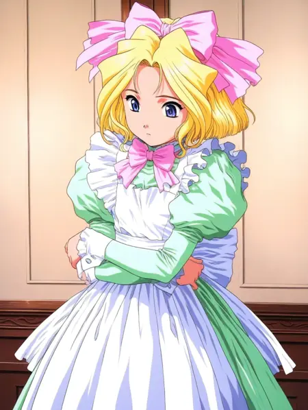 汎用:金髪、青い目、短い髪、ピンクのリボン、