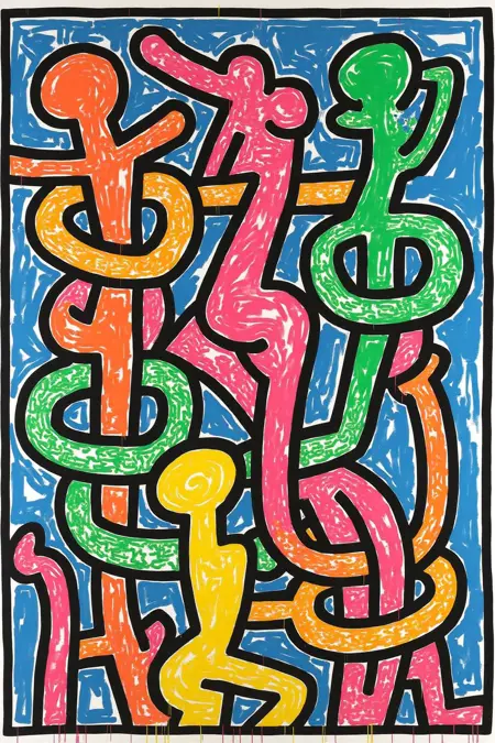 Keith Allen Haring (May 4, 1958 โ February 16, 1990) was an American artist and social activist known for his bold, colorful, and energetic artwork, which combined street culture, pop art, and political activism. His workโfeaturing radiant babies, barking dogs, dancing figures, and abstract symbolsโbecame one of the most recognizable visual styles of the late 20th century.