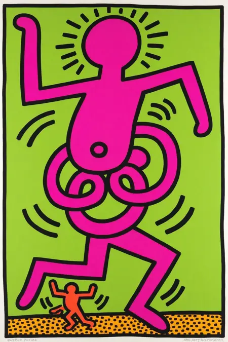 "Radiant Baby" โ His most famous symbol, representing purity and new beginnings.