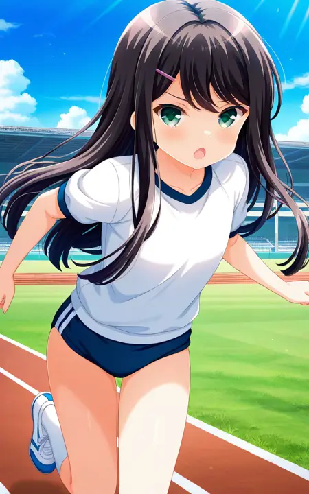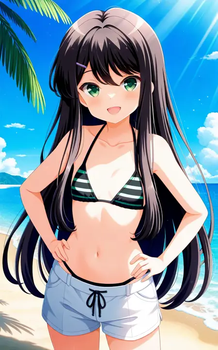 트리거 단어: kamijourui, 검은 머리카락, 머리핀, 머리 장식, 앞머리, 매우 긴 머리카락, 녹색 눈