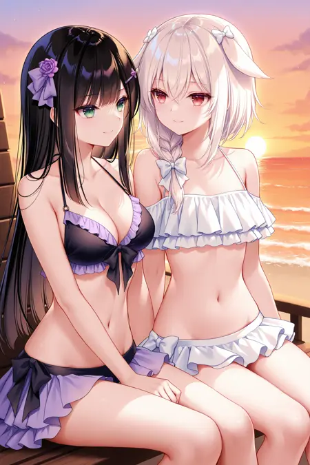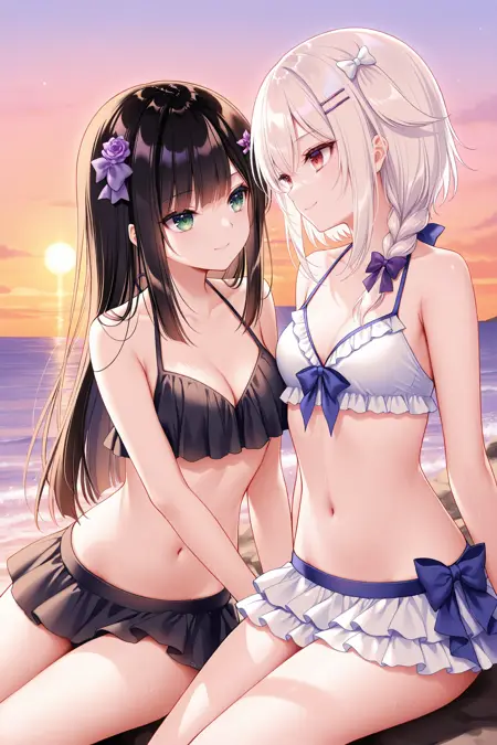 내가 처음으로 같은 프레임에 두 명의 소녀를 실험한 LoRA입니다. 이는 두 명의 소녀를 하나의 이미지로 생성하거나 개별적으로 생성할 수 있게 해줍니다.