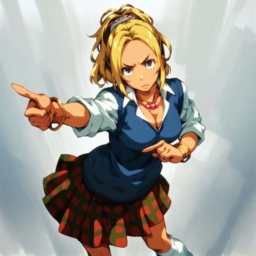 score_9, score_8_up, score_7_up, 1girl, Himura Ai, dark-skinned female, gyaru, blonde hair, ponytail, hair ornament, brown eyes, jewelry, necklace, bracelet
