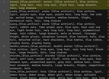 txt is named after the series and contains all the characters of NoobAI. You can use it directly in wildcard or as a reference for generating characters. Each character tag is an example picture on danbooru.