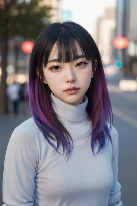 - 1girl, 영화, 사진, 심도, 그라데이션 헤어