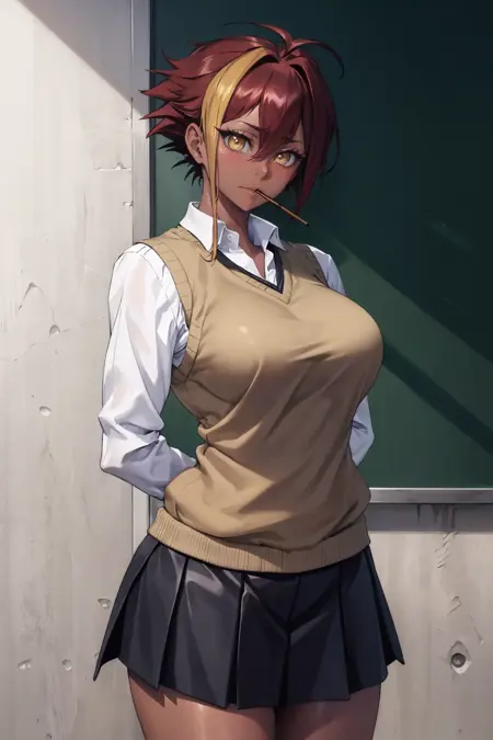 머리카락은 매우 안정적이지만, 단일 앞머리에서 가끔 노란색이 사라질 수 있습니다. 가중치 1.0으로 다시 생성하면 다시 나타납니다.