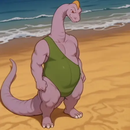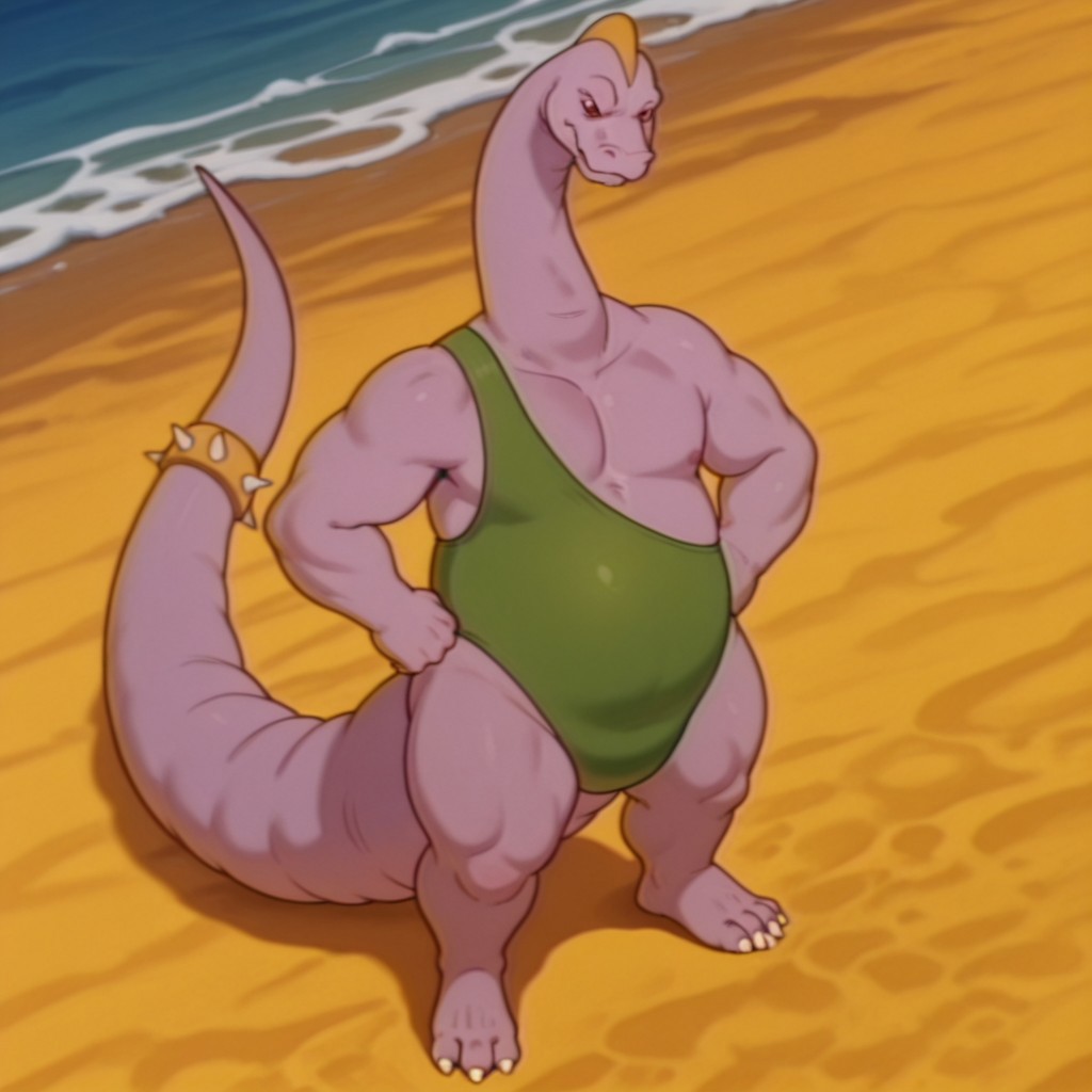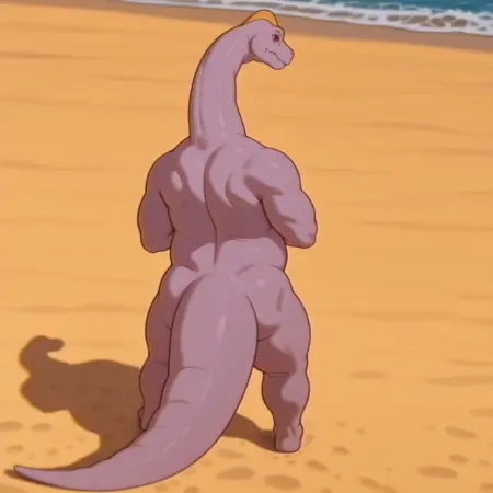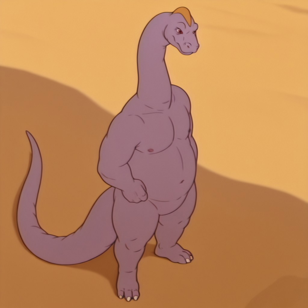 BrachioDsil, anthro, male, Brachiosaurus, light purple skin, yellow crest, long neck,