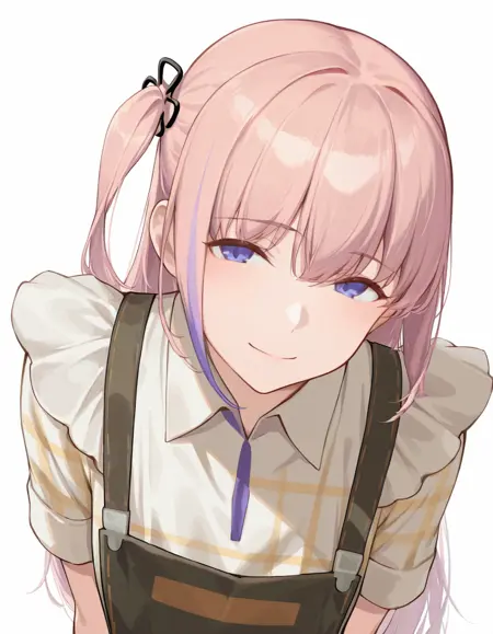 pink hair, blue eyes, long hair, ponytail, small breast, streaked hair