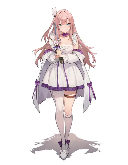 TopHatDriftingToFlower, THDF_dress, THDF_detached_sleeves, THDF_dress_flower, mismatched legwear, THDF_single_thighhigh, THDF_thigh_strap, THDF_shoes, white footwear, shoes ribbon