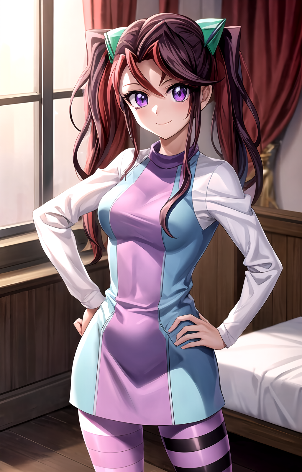 • 彼女のメインの衣装を再現するには、長袖シャツドレスタイツ縞模様の脚部装着物、および太ももストラップを使用してください。