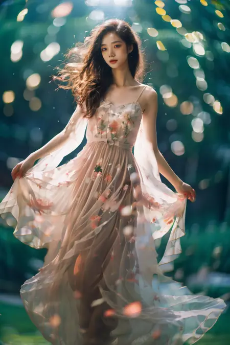 이것은 보케 빛점(약간의 초점 흐림 포함)과 날리는 먼지(전경 흐림 효과 포함)를 결합한 렌즈 효과 + 장면 LoRA입니다. 빛점은 중심 주체를 중심으로 퍼지고, 빛나는 먼지는 전경의 분위기를 연출하여 매우 아름답습니다.
