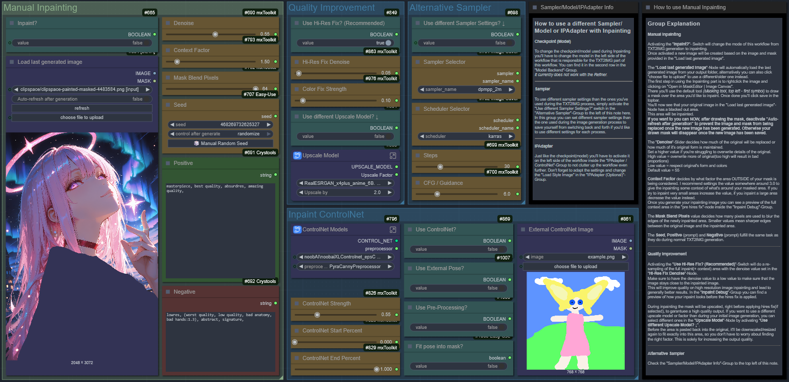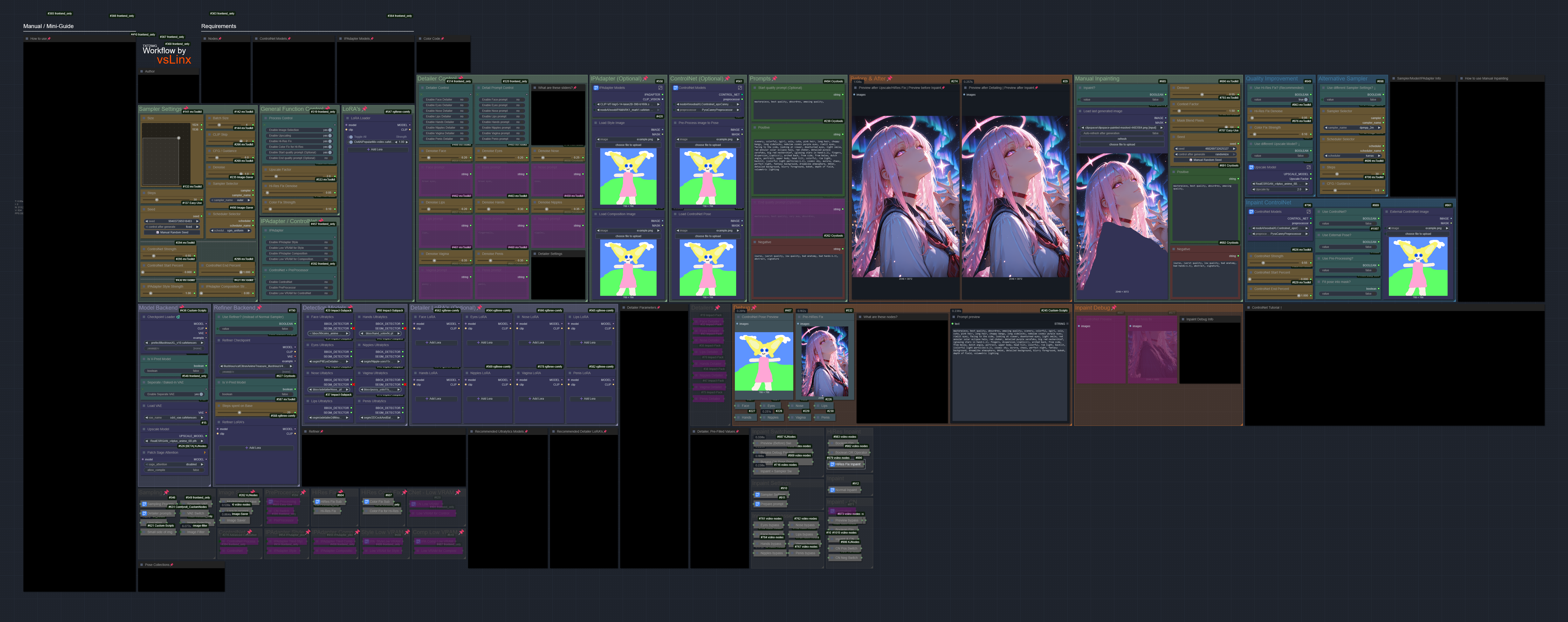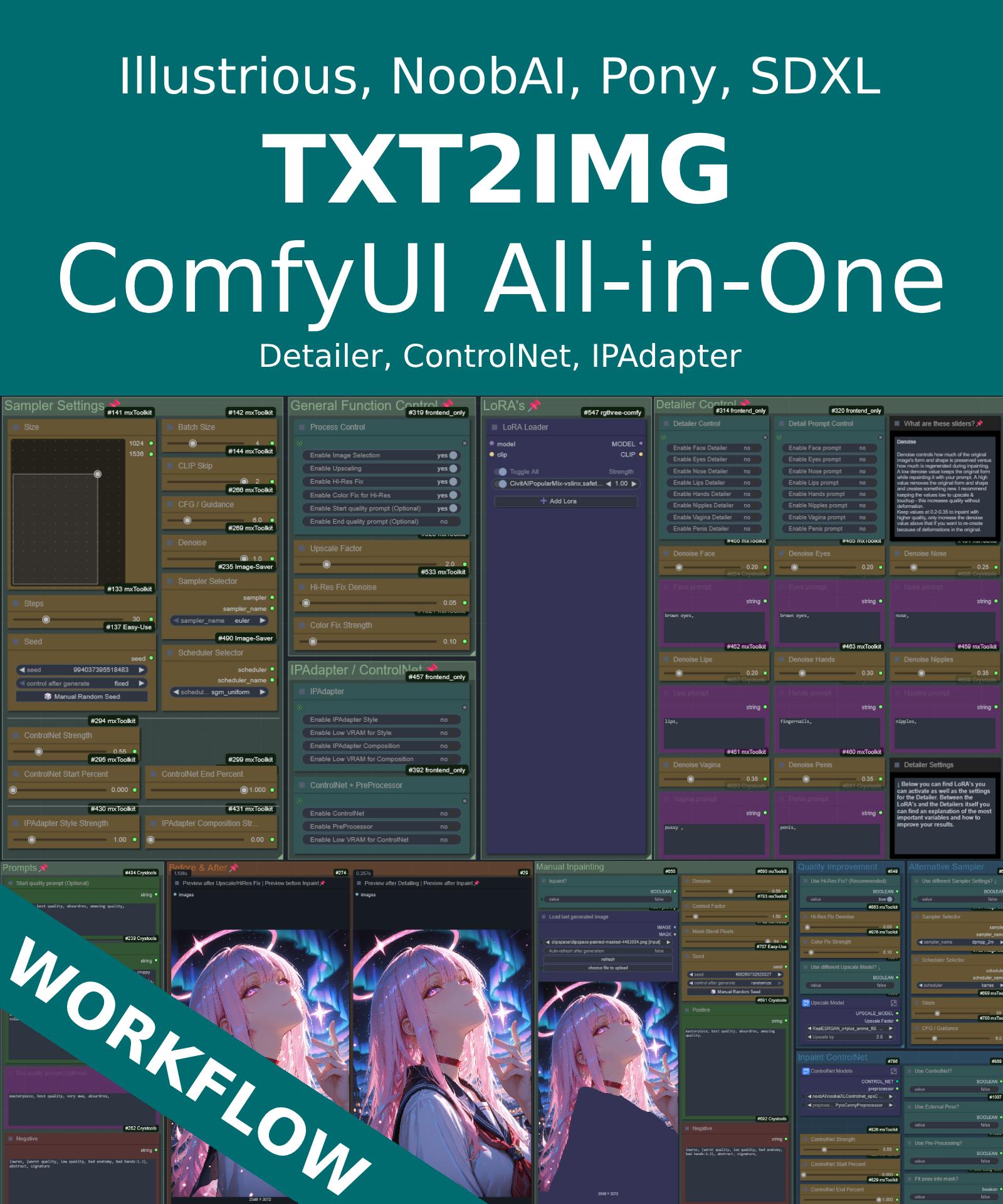All-in-One, Detailer(ADetailer) + ControlNet + IPAdapter + HiRes Fix + Refiner + Manual Inpainting [Illustrious, Pony, SDXL]