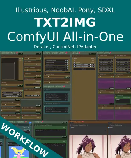 All-in-One, Detailer(ADetailer) + ControlNet + IPAdapter + HiRes Fix + Refiner + Manual Inpainting [Illustrious, Pony, SDXL]