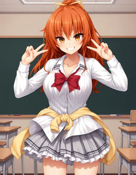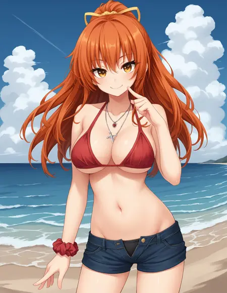 | 训练词汇 | Asuhara yuuki, red orange hair, long hair, orange yellow eyes, large breasts, high ponytail, hair ribbon, yellow ribbon,已复制! outfit01, white collared shirt, long sleeve, collarbone, red ribbon tie, yellow cardigan around waist, pleated skirt, gray skirt, frilled skirt,已复制! outfit02, white shirt, off shoulder shirt, slit sleeve shirt, collarbone, 2 necklaces, red jewelry necklace, cross necklace, bracelet, lace-trimmed skirt, white sandals,已复制! outfit03, red bikini top, black bikini bottom, unbuttoned denim pants, wrist scrunchie, 2 necklaces, red jewelry necklace, cross necklace,已复制! outfit04, underwear, yellow underwear, frill trimmed bra, pantie, cameltoe, underwear only,已复制! outfit05, striped visor cap, orange line decollated white shirt, striped apron, waist ribbon, ribbon tie striped skirt, white glove, cat tail,已复制! |