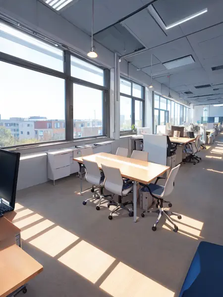 推奨タグ:窓、机、椅子、コンピューター、天井、天井照明、