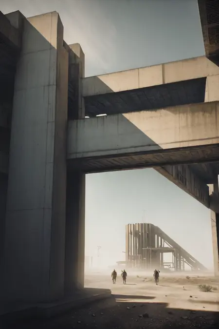 test prompt:architecture, soviet architecture, photorealistic, retro, (soviet), (megastructure), low saturation, dirt, futuristic, concrete and shiny metal, details, texture, symmetric, dynamic light, film grain