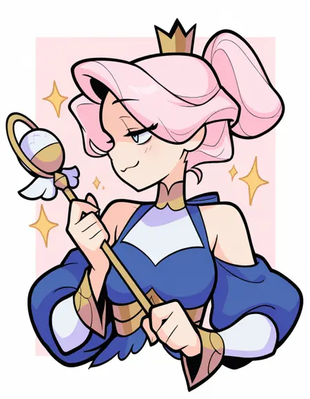 magical outfit - single hair bun, pink hair, blue dress, mini crown