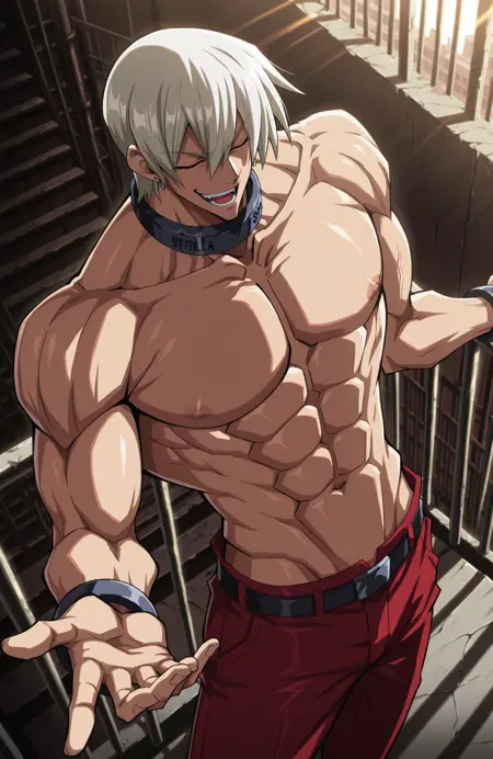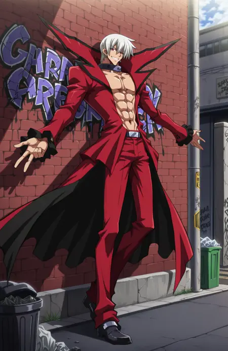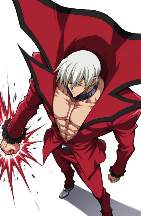 这个LoRA在训练时没有包含他左胸上的洞。首先,我其实不太喜欢这个洞;其次,我本来是意外训练了包含这个洞的版本,但SD总是把它渲染成一个奇怪的纹身,所以我不得不从数据集中清除它,重新训练这个LoRA。*叹气*。