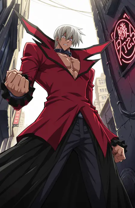 ns_arcl1ght, arcl1ght_jacket, red pants,