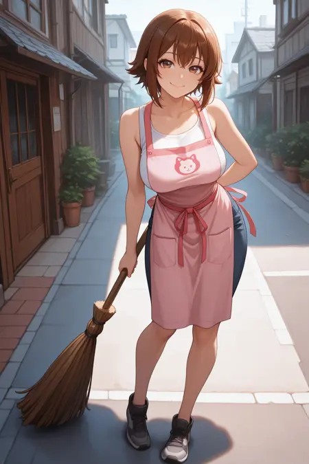 트리거 단어는 "gblueck"이며, "갈색 머리, 단발, 갈색 눈"이 필수입니다.