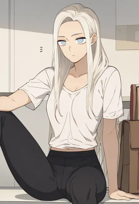 남호상풍 여동생: BCS, 흰 머리카락, 긴 머리카락, 회색 파란 눈, 음모, 중간 크기의 가슴, 흰 셔츠, 검은 플리츠 스커트, 흰 운동화,