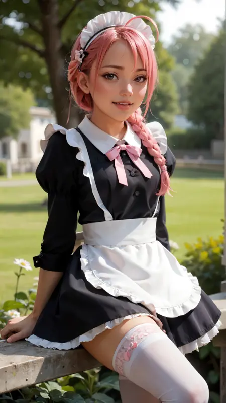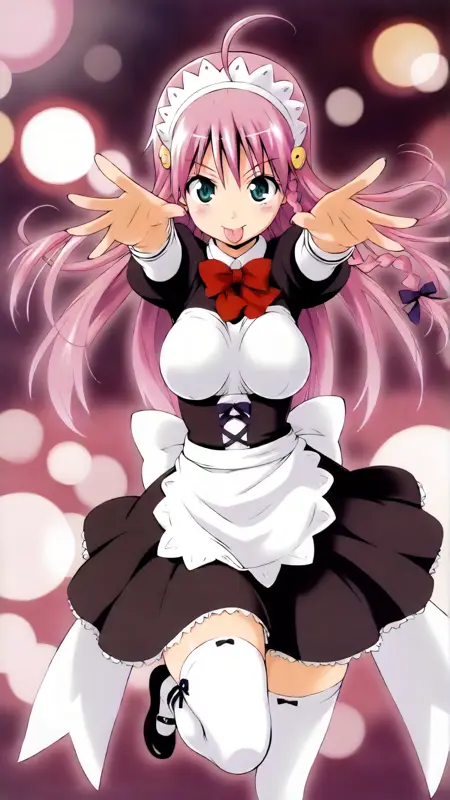 例のプロンプト: "nono_gunbuster, アニメの女の子, 1girl, ソロ, 長い髪, レッグウェア, ピンクの髪, 編み込み, ahoge, 舌, 舌を出している, 白いレッグウェア, 女中, 女中の帽子"
