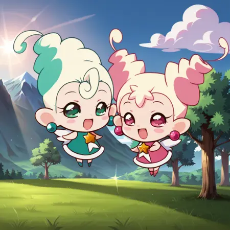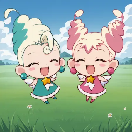 A LoRA for Pyupyu and Kyukyu, the mascots of Fushigiboshi no Futago Hime Gyu!