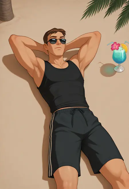 For NSFW Prompt: barechest, topless male/nude, flaccid penis, erect penis, hung penis, testicles, erection, pubic hair, male masturbation, anus, ass