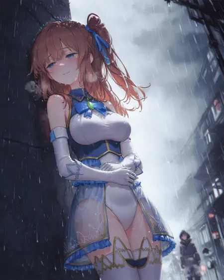 cele_mag_dress, white leotard, white gloves, white thighhighs, elbow gloves,