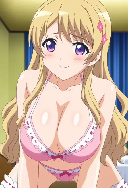 Base: Momoka, blonde hair, long hair, purple eyes, large breasts,